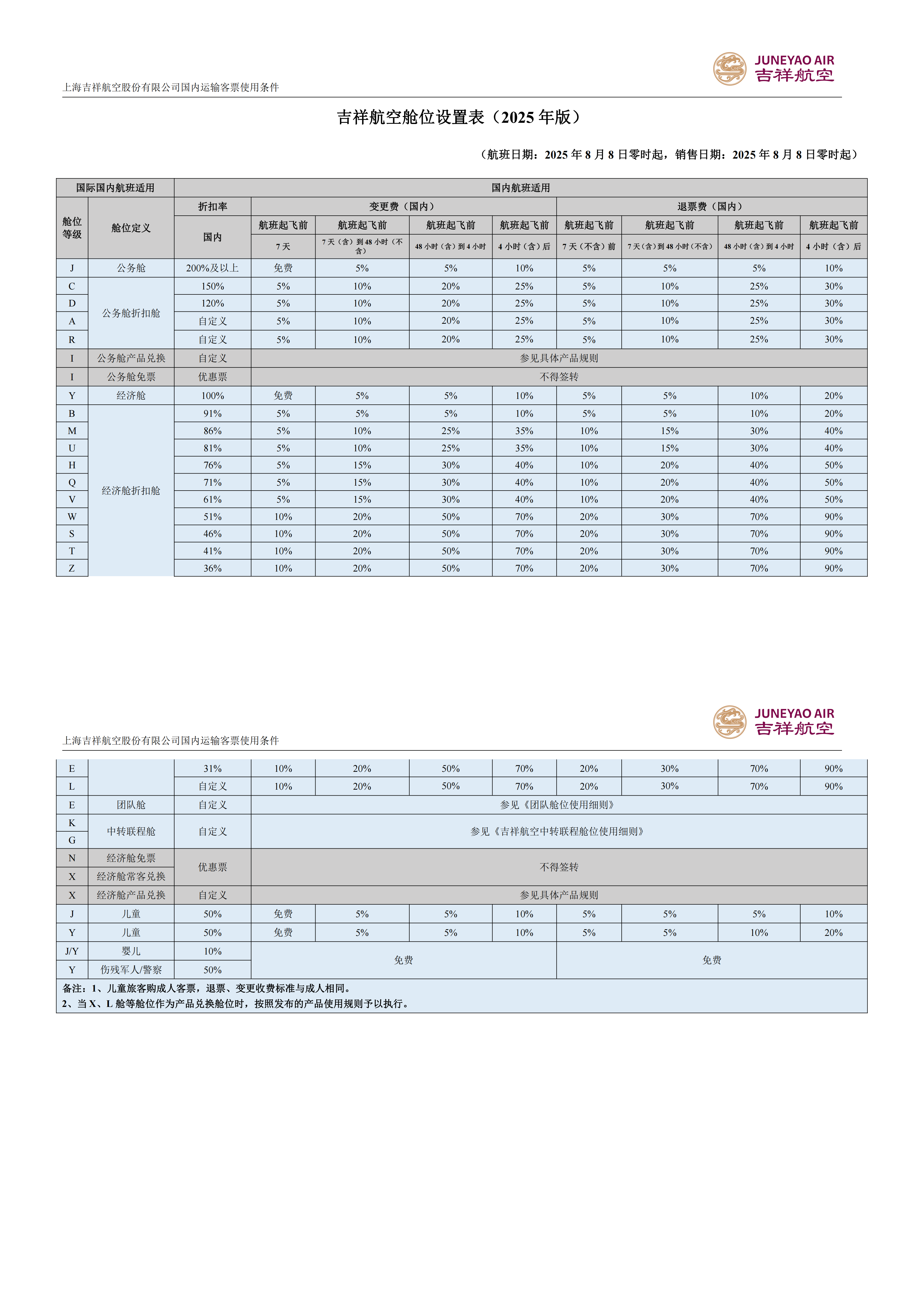 | I | 团队票 | 参见《吉祥航空团队I舱操作规定》 | |||||