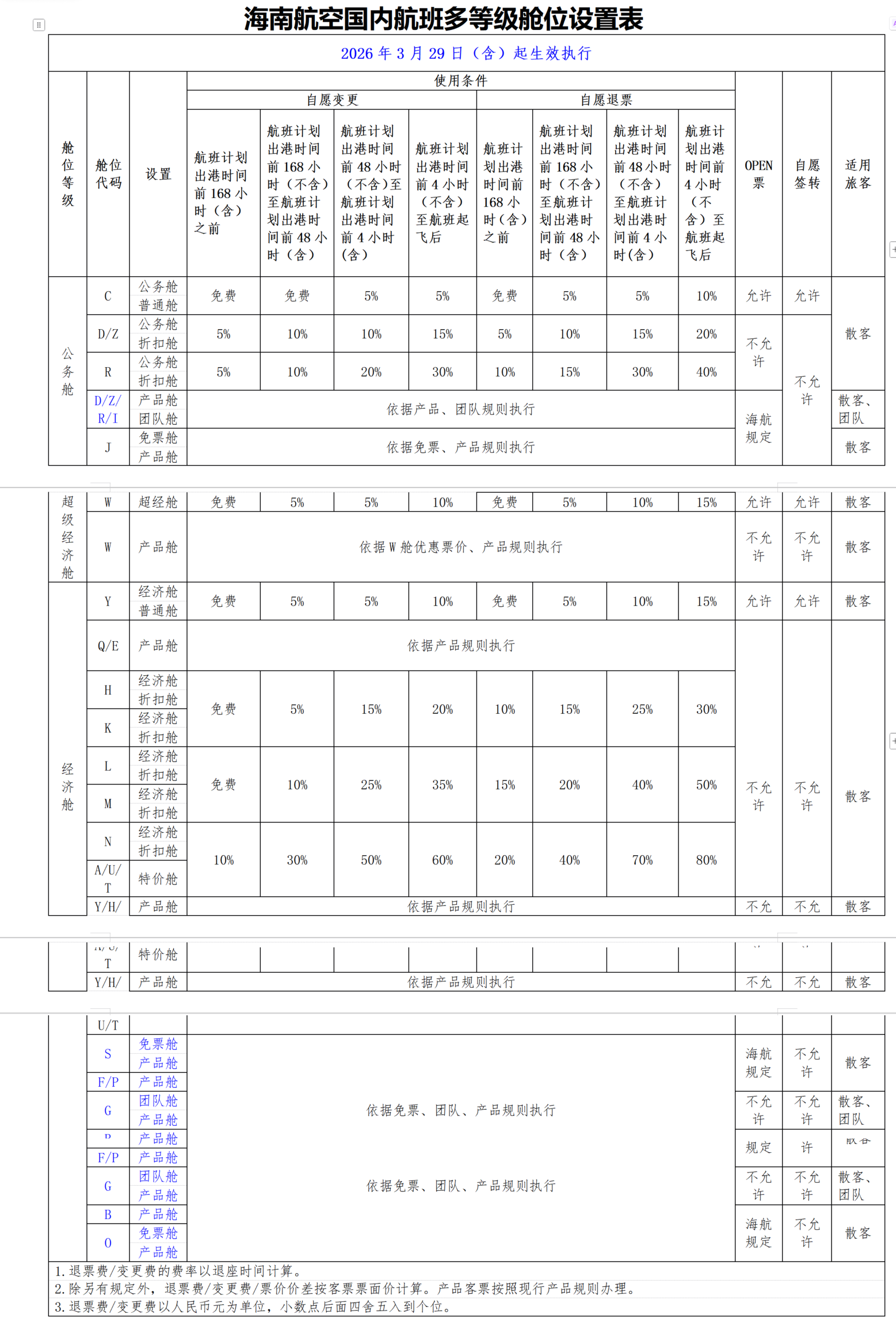 海航集团(HU/CN) 2026年03月29日(含)起执行的新客规>> 2025年11月27日(含)起执行的新客规>> 2025年06月10日(含)起执行的新客规>> 2025年05月20日(含)起执行的新客规>> 2025年04月10日(含)起执行的新客规>> 2024年12月27日(含)起执行的新客规>> 2024年05月16日(含)起执行的新客规>> 2023年10月27日(含)起执行的新客规>> 2023年07月05日(含)起执行的新客规>> 2022年07月12日(含)起执行的新客规>> 2020年5月20日(含)起执行的新客规>> 2019年3月31日(含)起执行的新客规>> 2018年11月01日(含)起执行的新客规>> 2018年1月10日(含)起执行的新客规>> 2017年4月6日执行新客规>> 2016年5月1日执行新客规>> 2016年4月12日执行新客规>> 2015年11月20日执行新客规>> 2015年1月14日执行新客规>> 2013年7月26日执行旧客规>> 2012年3月25号执行旧客规>>